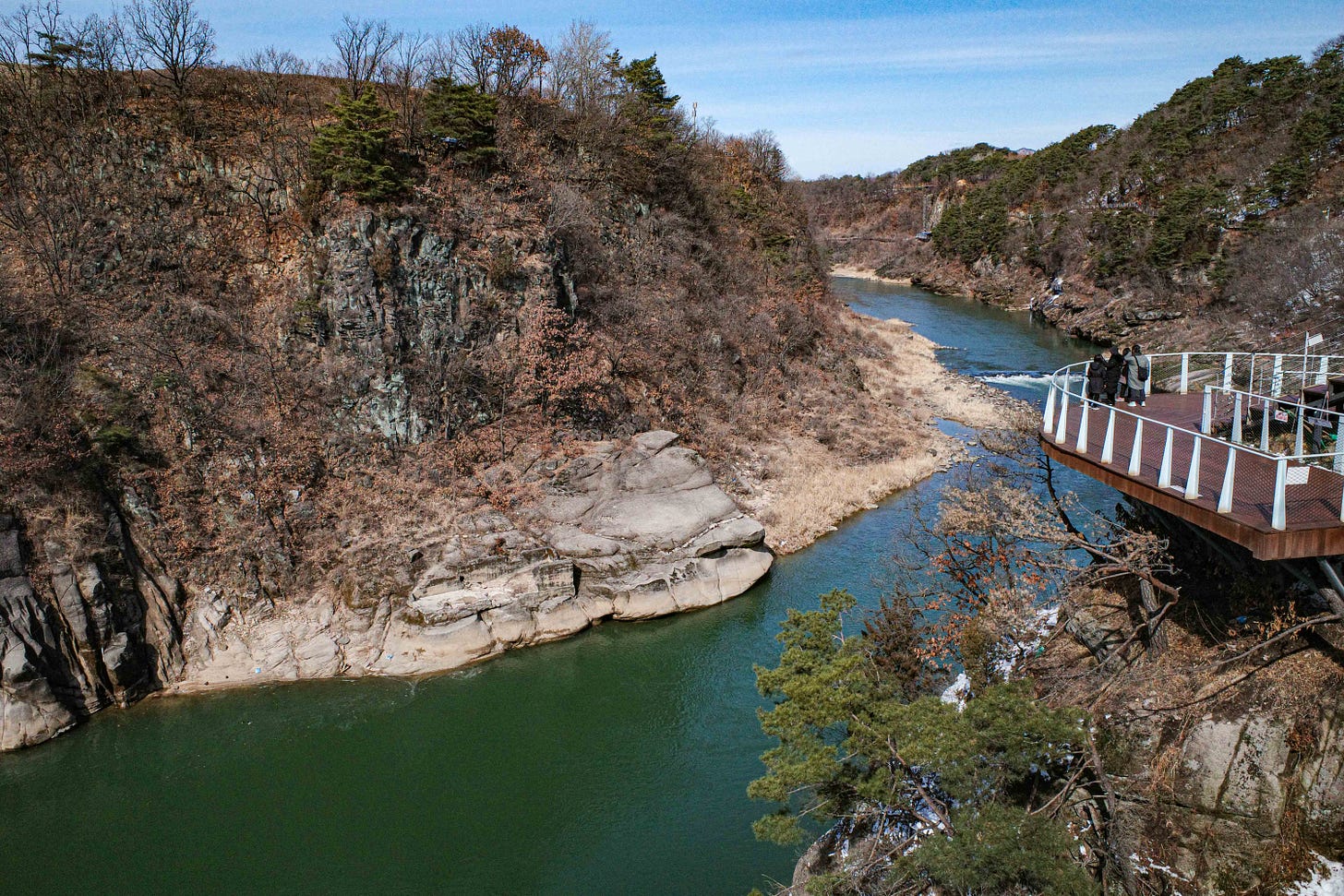 지난 주 금요일에 두 아이와 함께 한탄강 주상절리길(잔도)에 다녀왔어. 원래는 물윗길에 가려고 했는데, 전날까지 눈비가 많이 왔던터라 혹시나해서 고객센터에 전화해봤더니 부교가 잠겨서 일부 구간만 짧게 열려있다고 하더군. 그래서 작년에 멀리서만 보고 못 가봤던 주상절리길에 갔어. 결과적으로는, 애들 체력에 적당한, 좋은 선택이 됐지.