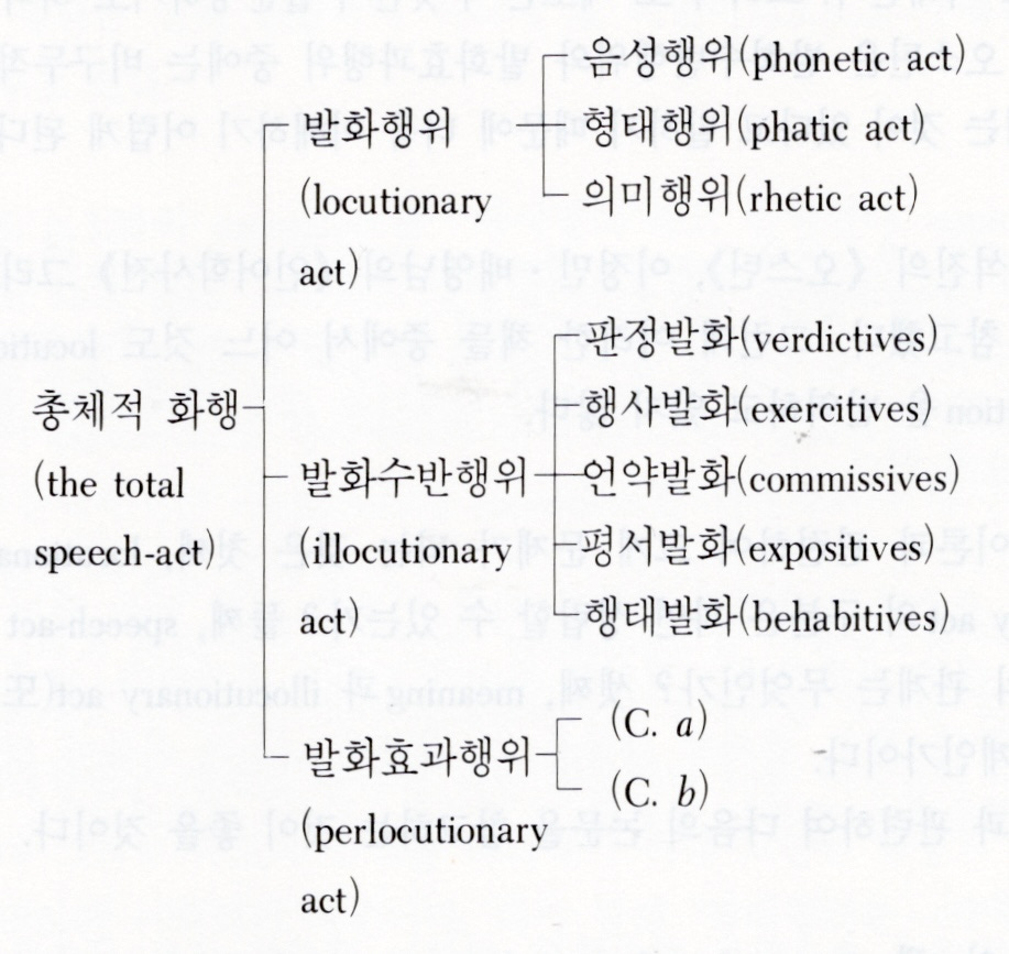 음성행위(phonetic act), 형태행위(phatic act), 의미행위(rhetic act)