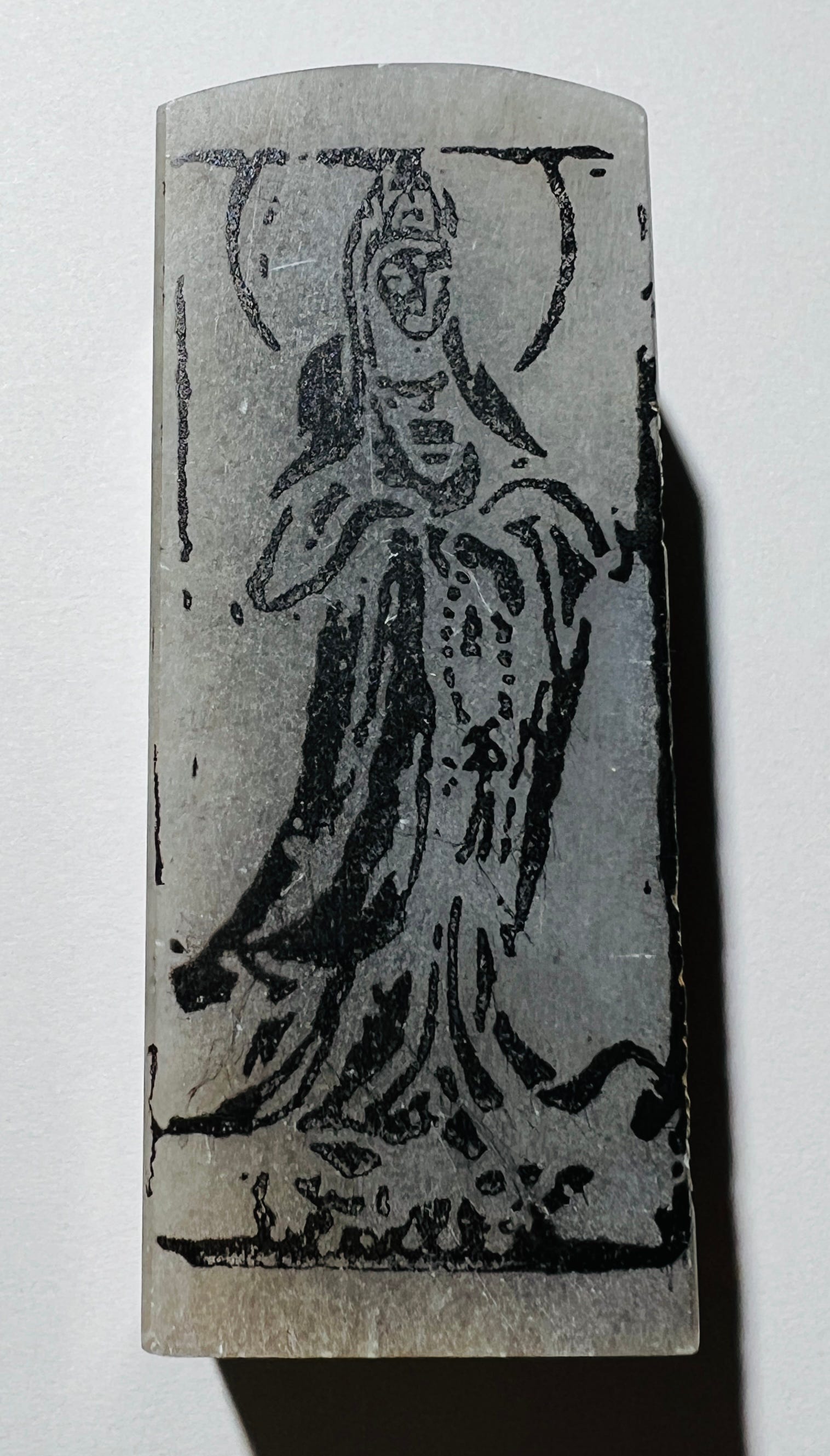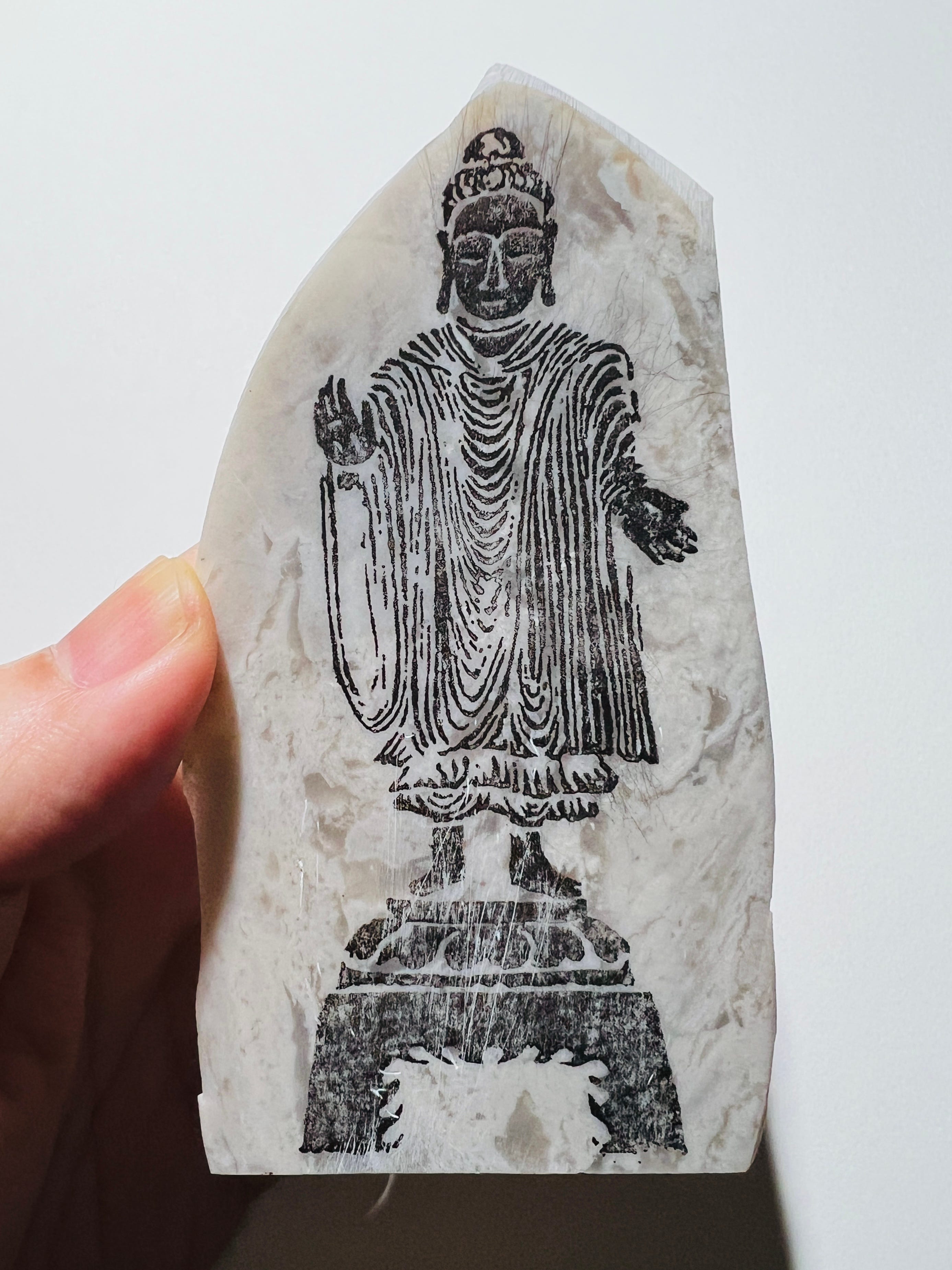 국내에서 생산되는 해남석에, 새기려는 불조상을 전사(轉寫)해 놓은 것입니다. 아마도 이번 것들 중 가장 어렵지 않을까 예상하고 있죠. 종이에 찍는 인장이 아닌 세워놓고 보는 용도로 만들려고 합니다. 흥분되는 도전이네요.