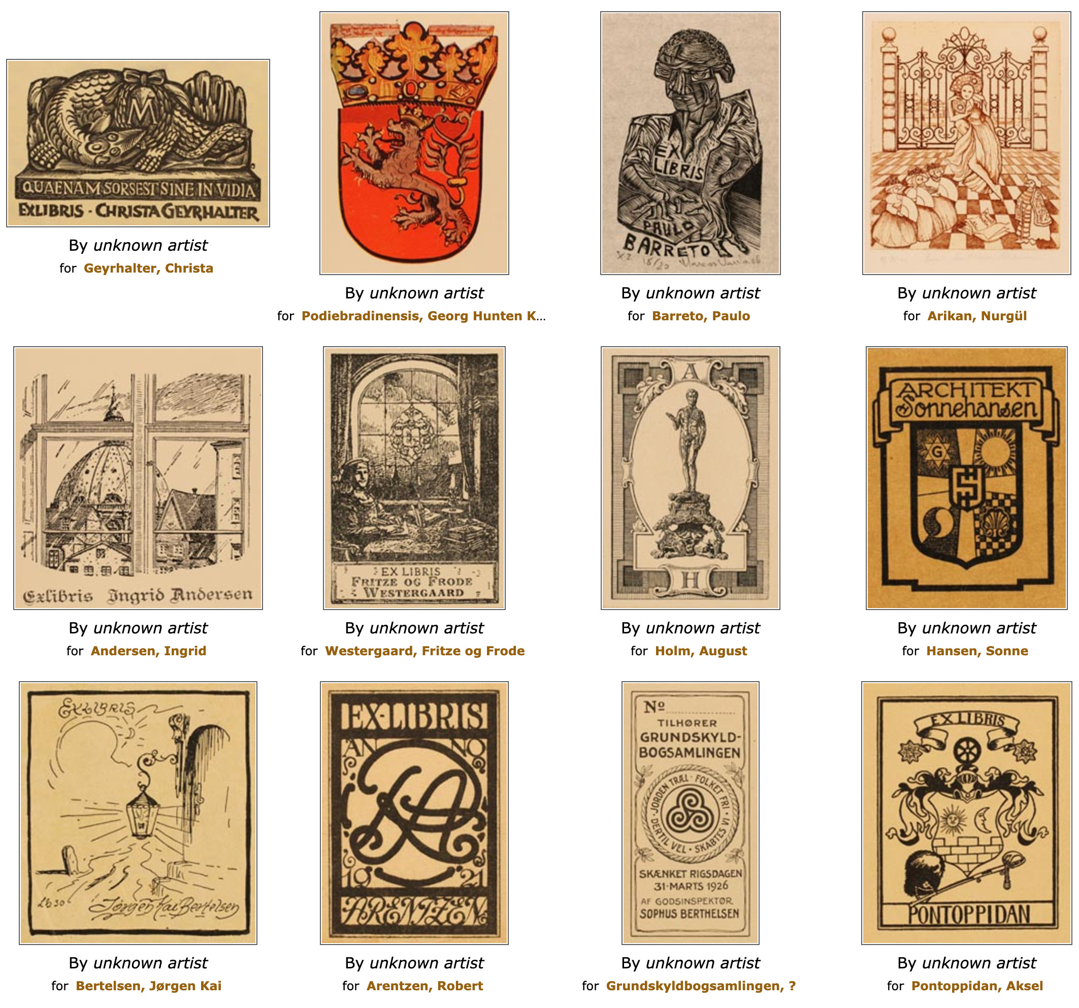 덴마크 ‘프레데릭스하운 미술관’은 온라인으로 장서표 컬렉션을 공개하고 있습니다. 이곳에서도 세계 각국의 다양한 장서표를 구경할 수 있어요. 왼쪽 사이드바에 있는 기능을 이용해 컬렉션별, 시대별, 나라별, 제작기술별, 작가/소유자별 등으로 필터링해서 볼 수도 있네요.