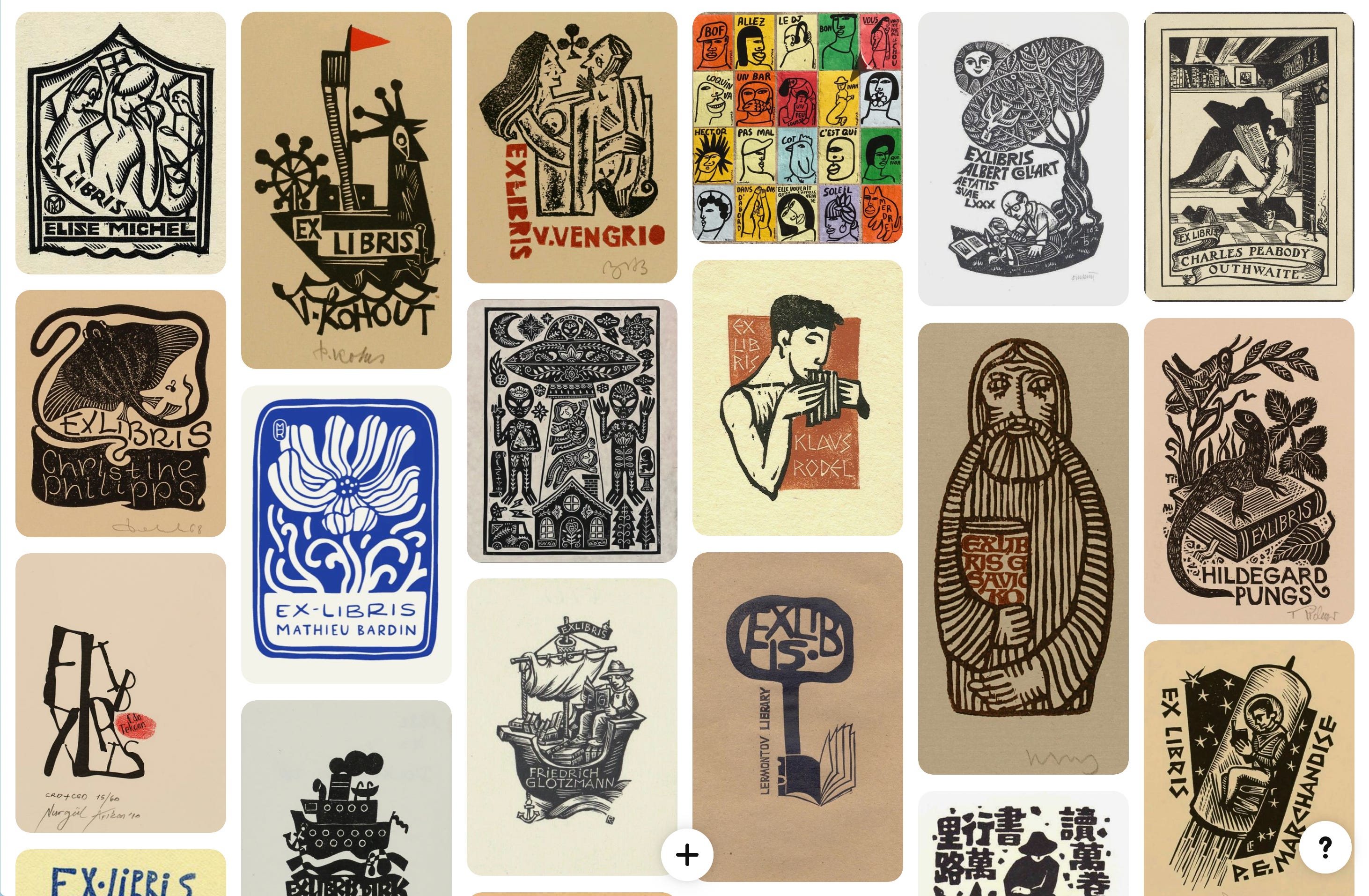 그래도 저는 장서표 또는 장서인을 한번 만들어보고 싶네요. 그 준비를 위해 관련 책도 몇 권 가지고 있지만, 이미지 자료도 수집하고 있어요. 다른 나라에는 꽤 다양한 장서표 문화가 있나봐요. 하나하나가 멋진 작품입니다.